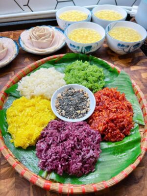 Xôi được nấu mới mỗi ngày từ nếp cái hoa vàng, dẻo thơm và phù hợp cho mâm cỗ truyền thống.